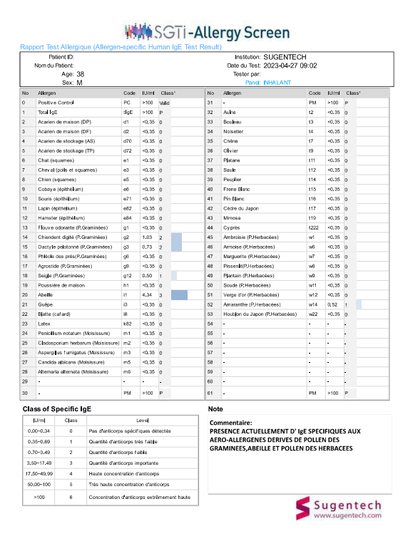 SGTi-Allergy Screen est un test simultané d'allergènes multiples pour les dispositifs de diagnostic in vitro.